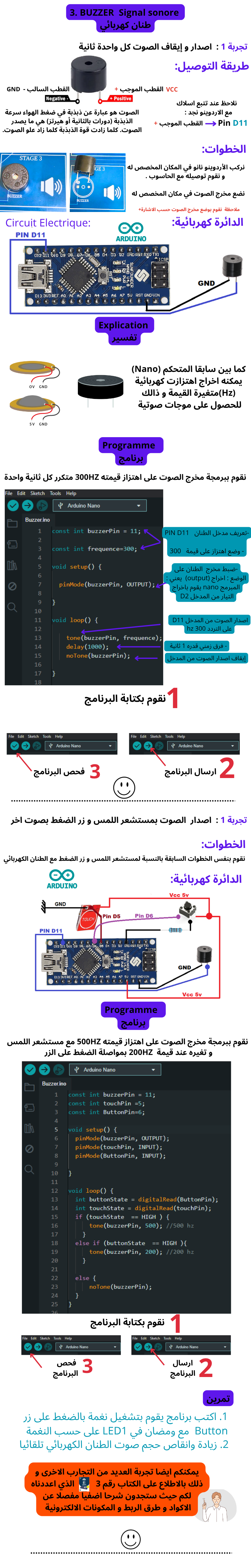في هذه المرحلة سنتعلم كيفية تشغيل الجرس لإصدار أصوات أو نغمات بسيطة , مع فهم طريقة التوصيل بالأردوينو وبرمجته بإرسال إشارات صوتية عبر التحكم في تردد الجرس