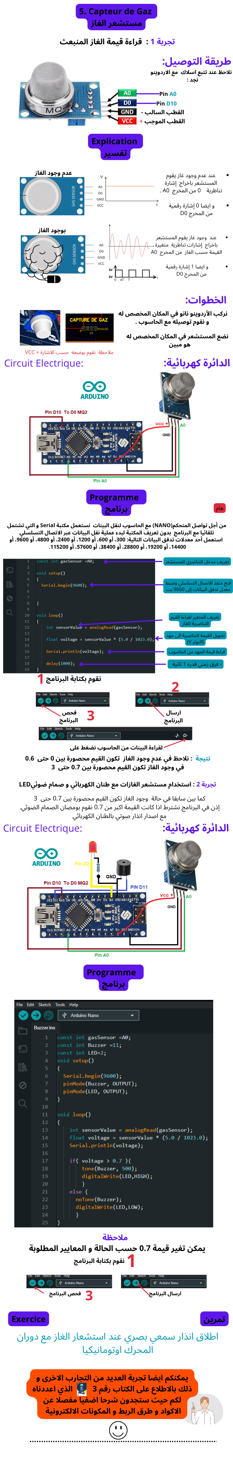 في هذه المرحلة سنتعلم كيفية عمل مستشعر الغاز للكشف عن وجود غازات في البيئة المحيطة مع معرفة التوصيل بينه وأردوينو وبرمجته حسب الحاجة